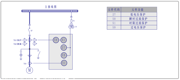 该组件用作2000kw以下电动机的主要保护装置,以保护电动机的内部相间短路故障。根据电动机的启动和正常运行情形,设置了两个电流设置:高和低。在电动机启动期间用到高压